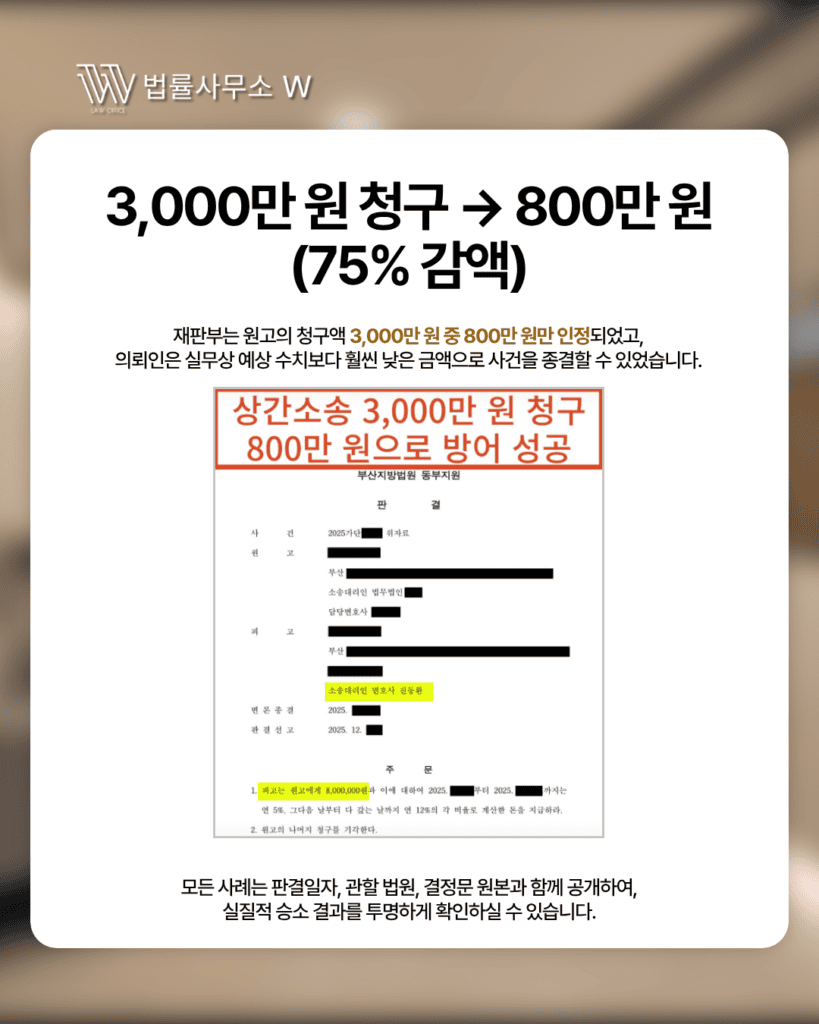 결과: 예상 금액의 75%를 덜어내고 최종 800만 원으로 방어 성공.